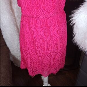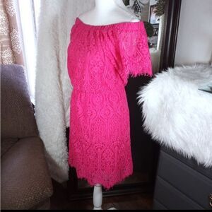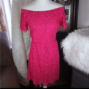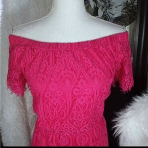 MAURICES HOT PINK OFF-THE-SHOULDER LACE DRESS SZ.M EUC LIKE NEW.