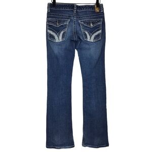 MAURICES Jeans Bootcut Embroidered Bling Flap Pockets Juniors Size 1/2 Regular