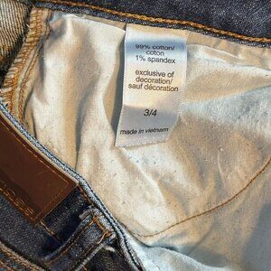 Excellent used condition pair of MAURICES jeans. Size 3/4 skinny style - rise is 9 inches-. These are skinny style with 99% cotton 1% spandex.
