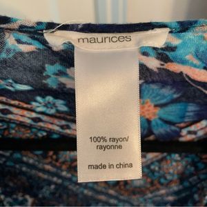 MAURICES Kimono Navy Blue Geometric Floral Patter Tie Sides One Size 100% Rayon