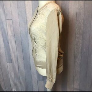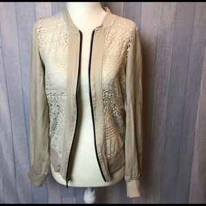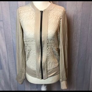MAURICES Long Sleeve Zip Up Front Lace Jacket Size Small beige white. Condition is Pre-owned.