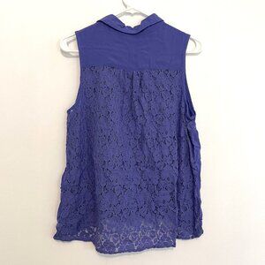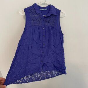 - solid purple ish (may have blue ish tint) collared sleeveless tank top blouse top shirt