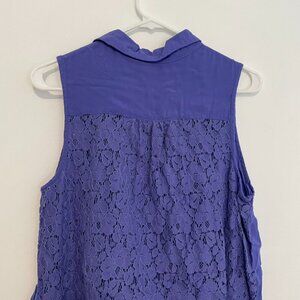 - solid purple ish (may have blue ish tint) collared sleeveless tank top blouse top shirt