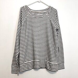 MAURICES Stripe Crew Neck Pullover White Black French Terry Cotton Sweatshirt XL