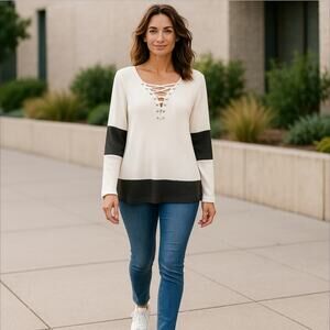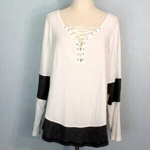 MAURICES Striped Lace Up Long Sleeve Knit Top! Size XXL