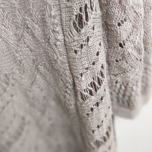 Nice, good condition. MAURICE'S sweater, size XS. Pit to Pit is approximately 13". Length is approximately 28". The yellow dot on the front of sweater is just a stick pin to hold the sweater closed. The sweater has no buttons. Nice for fall or spring. Lightweight.