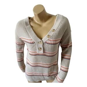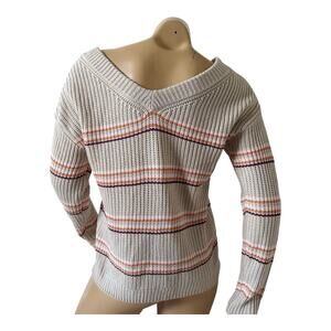 MAURICES Womens Size Small Striped V Neck Long Sleeve Ribbed Pullover Sweater