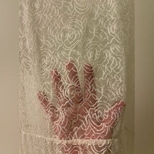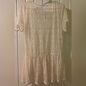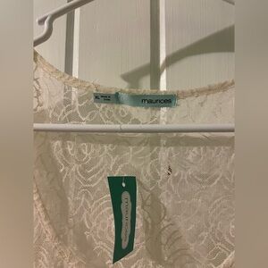 NWT and no defects. Size X-large sheer lace top. Armpit to armpit 19” and centerback length is 29 1/2”. I feel it runs a little small and would fit a lmedium or large best. Verify measurements. Tote 12.