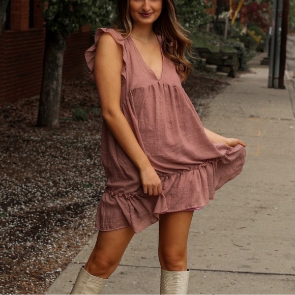 MAUVE PINK RUFFLE DRESS