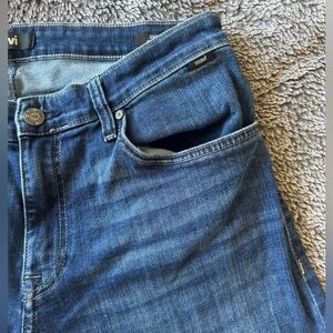 Upgrade your wardrobe with these classic blue denim jeans. Perfect for any casual occasion, these jeans offer both style and comfort.