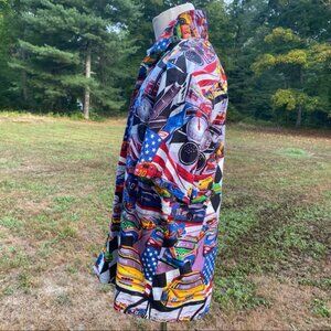 MAX BOXXER SHIRT HAWAIIAN CASUAL BUTTON DOWN RACE CARS AMERICANA SIZE L