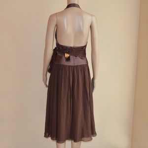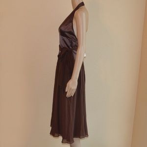 MAX & CLEO Espresso Brown Silk & Satin Halter Party Dress NWT