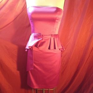 MAX & CLEO Strapless Peplum Dress, Knee Length, Boned Bodice, Padded Cups, Attached "Ruffle" creates peplum effect