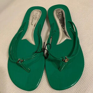 ***Please note: See photos for details - Rhinestone missing on one of the sandals and markings on the shoe