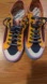 These sneakers feature a vibrant blue and yellow color scheme, perfect for making a statement. With a classic low-top silhouette and a comfortable flat sole, they are ideal for everyday wear. The collaboration between MAX&Co. and SUPERGA adds a unique touch to this stylish footwear. Men's size 7.5 Women's size 9