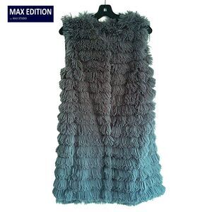 MAX EDITION by Max Studio NEW Old Money Fox Long Hair Faux Fur Mid-Length Vest S