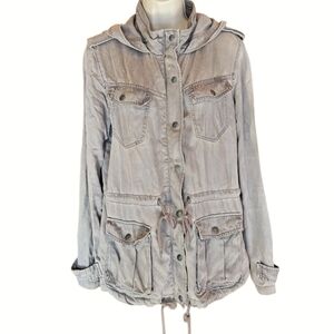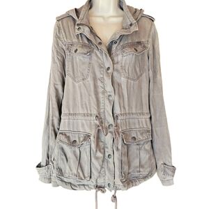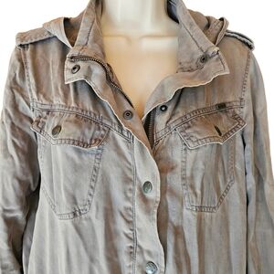 MAX JEANS Tencel Military Style Disstressed Hooded Cargo Utility Jacket …