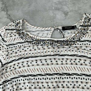 MAX JEANS Womens Size S Small Long Sleeve Cream Brown Tan Tunic Top