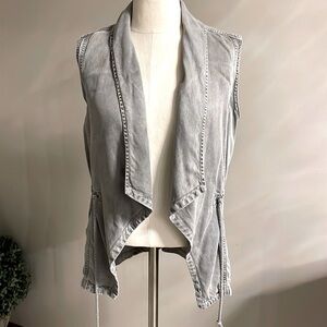 MAX JEANS women’s Drape Open Front Utility soft Vest adj draw string waist XS