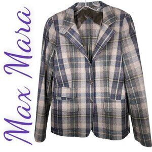 Max Mara Plaid Wool Blend Blazer, Size 6.