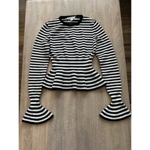 MAX MARA Jerzu Striped Knitted Peplum Sweater In White Size XS. Excellent condition, just the tag is half off.