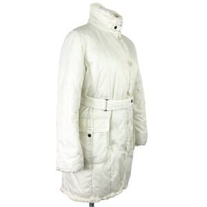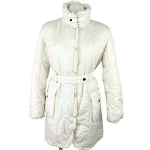 MAX MARA LONG BELTED WINTER PUFFER COAT W FUR TRIM SZ M US 10 WHITE In excellent preloved condition. Button closure. Some buttons could use tightening. Very minor discolorations ( see photos for those details ) otherwise it’s perfect. PLEASE CHECK THE MEASUREMENTS IN PHOTOS PRIOR TO PURCHASING TO ENSURE A PERFECT FIT. Warm!!!