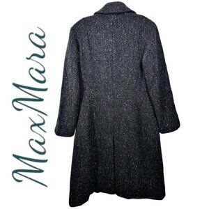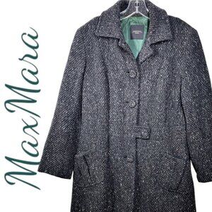 MAX MARA WEEKEND Vintage Wool Tweed Longline Button Front Charcoal Dress Coat, Size 10