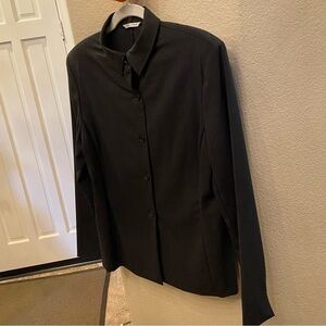 Pre-owned in great condition. Has normal wear. There’s a small hole on the front left shoulder as shown in picture. Has shoulder pads so it won’t be too noticeable. Women’s gray wool blend blazer jacket. Great for work, casual parties etc. Fabric is thin. Made in Italy. Comes from smoke and pet free home.