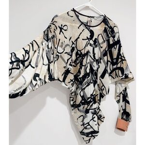 MAX MARA Women's Multicolor Printed Batwing Sleeve Silk Blouse Top Size M