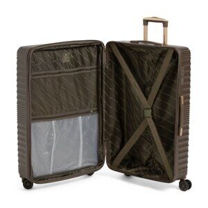 hardside construction, telescoping handle, top and side carry handles, lockable zippers, expandable, fully lined interior, interior zippered divider, 2 interior zip pockets, interior compression straps