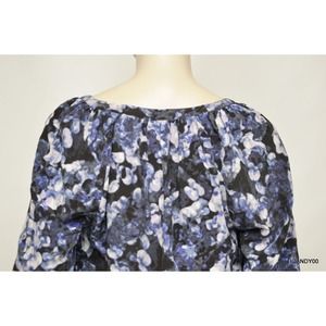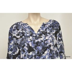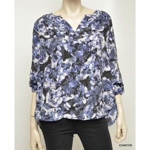 MAX STUDIO 3/4 Blouson Sleeve Split V-Neck Blouse Shirt Top Tunic Blue S Nwt