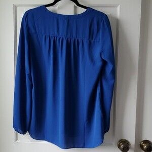 Flowy long sleeve peasant blouse in rich cobalt blue with buttons and pretty smocking detail at neckline. Easy care and great for travel. Great fall color. Pre-owned in excellent condition. Never worn and like new!