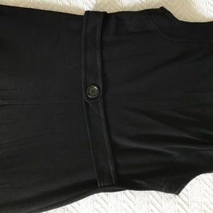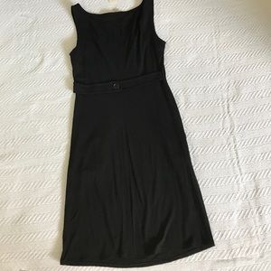 Sexy low cut MAX STUDIO black dress. Belted in back and two pockets in front. Fabric is 68% Rayon, 29% Polyester, and 3% Spandex. Dry Clean. This item has never been worn and still has its tag attached.