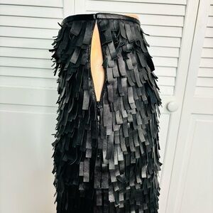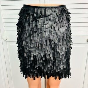 MAX STUDIO Black Faux Leather Fringe Mini Skirt Size Small