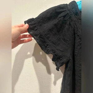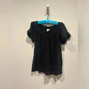 MAX STUDIO Black Flutter Sleeve Embroidered Neck Blouse / Size XS /