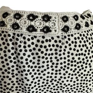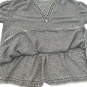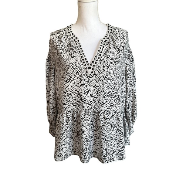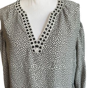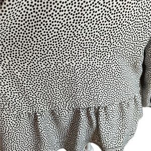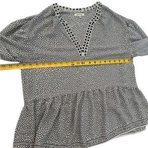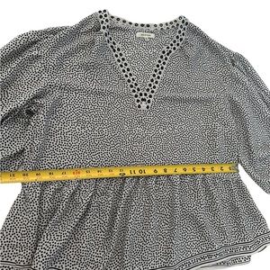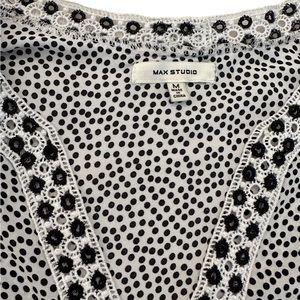 MAX STUDIO Blouse Polka Dot Eyelet V-Neck Balloon Sleeve Black White Size M