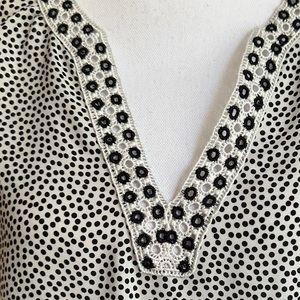 MAX STUDIO Blouse Polka Dot Eyelet V-Neck Balloon Sleeve Black White