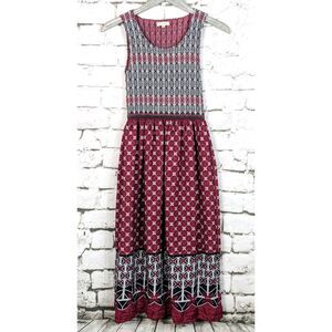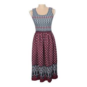 MAX STUDIO Boho Cottage Hippie Peasant Dirndl Smocked Midi Dress Stretch Small