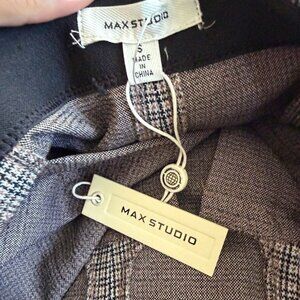 Elevate your holiday wardrobe with this chic brown pleated skirt from MAX STUDIO. Featuring a comfortable stretch fit, this new with tags skirt is perfect for festive occasions. Effortlessly stylish and versatile, it's a must-have for fashion-savvy individuals.