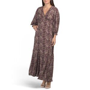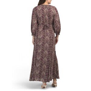 MAX STUDIO Burgundy Three-quarter Sleeve Printed Maxi Dress