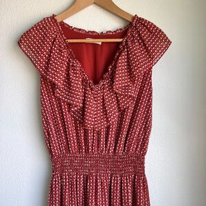 MAX STUDIO Burnt Orange Red Tiered Ruffled Sleeveless Maxi Dress, super flowy! It has a burnt orange liner. Ruffled trim brings charming style to a lightweight georgette maxi dress that's perfect for summer events