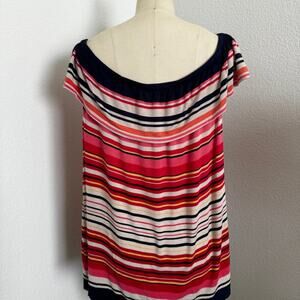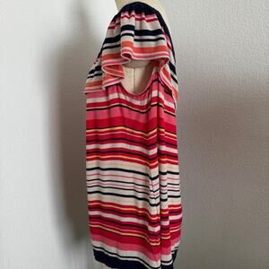 Super cute striped top in a flowy, slinky, super comfy knit fabric. Perfect for summer! Worn a few times but no stains, no snags, no pulls, no pilling.