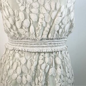 MAX STUDIO ~ Delicate Grey Dress with Sheer Leaf Woven Overlay ~ Size XS