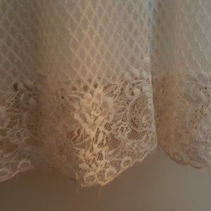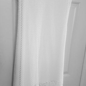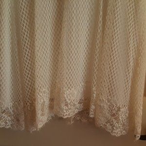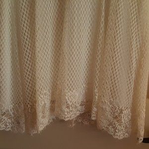 The dress fully lined with a delicate fishnet weave with eyelash trim .