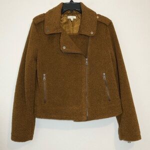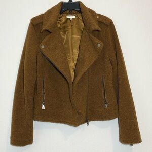 MAX STUDIO Faux Fur Cozy Asymmetrical Moto Zipper Jacket in Cognac size M