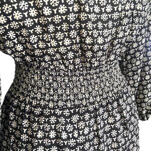 MAX STUDIO Floral Blouse Women's Size M Black & White Long Sleeve Elastic Waist