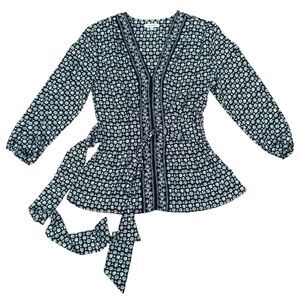 A perfect addition to your wardrobe, this MAX STUDIO blouse is crafted from lightweight fabric with a classic V-neckline. Vibrant in its black & white floral print, it features smocked tie details for a modern silhouette. This timeless piece is sure to be a staple for years to come. Available in Medium.