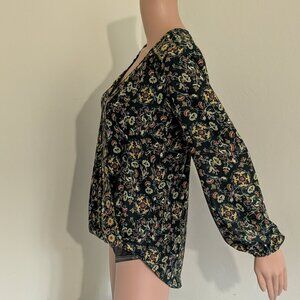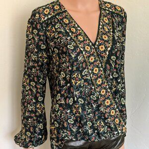 MAX STUDIO GREEN Floral Blouse - Faux Wrap High/Low Hem XS