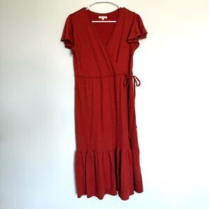 MAX STUDIO Flutter-Sleeve Red Midi Dress Size Small
