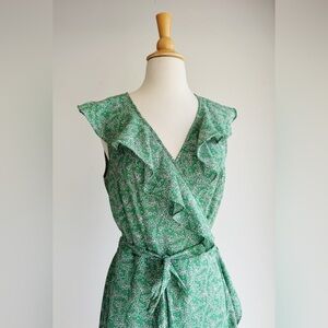 MAX STUDIO Green Floral Ruffle Wrap Midi Dress | Medium